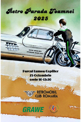 Va invităm în data de 25 Octombrie 2025, intervalul 9.00 - 14.00 la Retroparada Toamnei– 2025, eveniment organizat de către Filiala București-Ilfov.